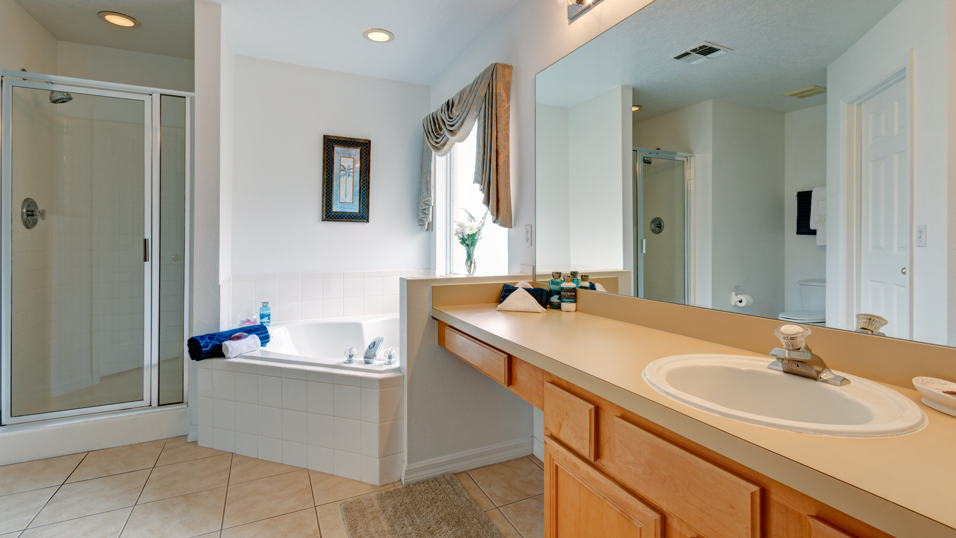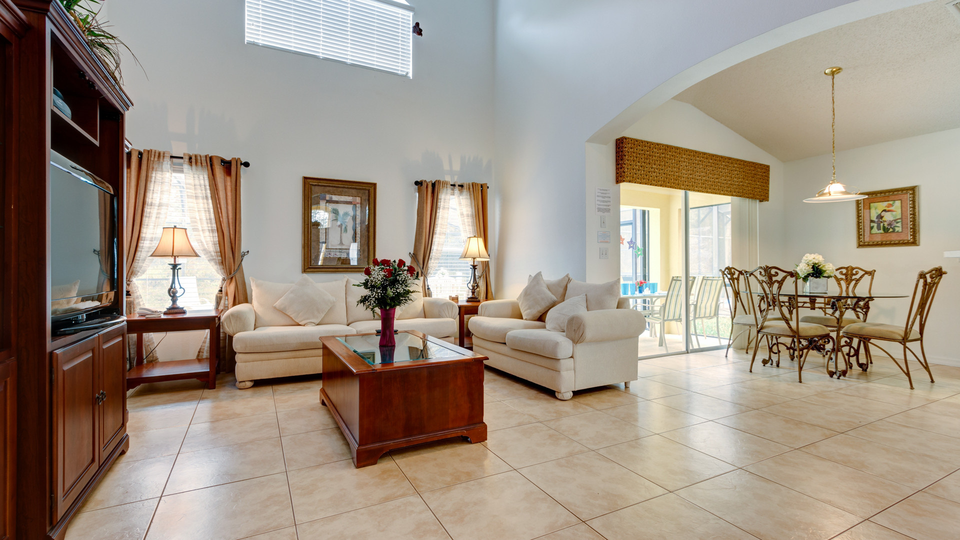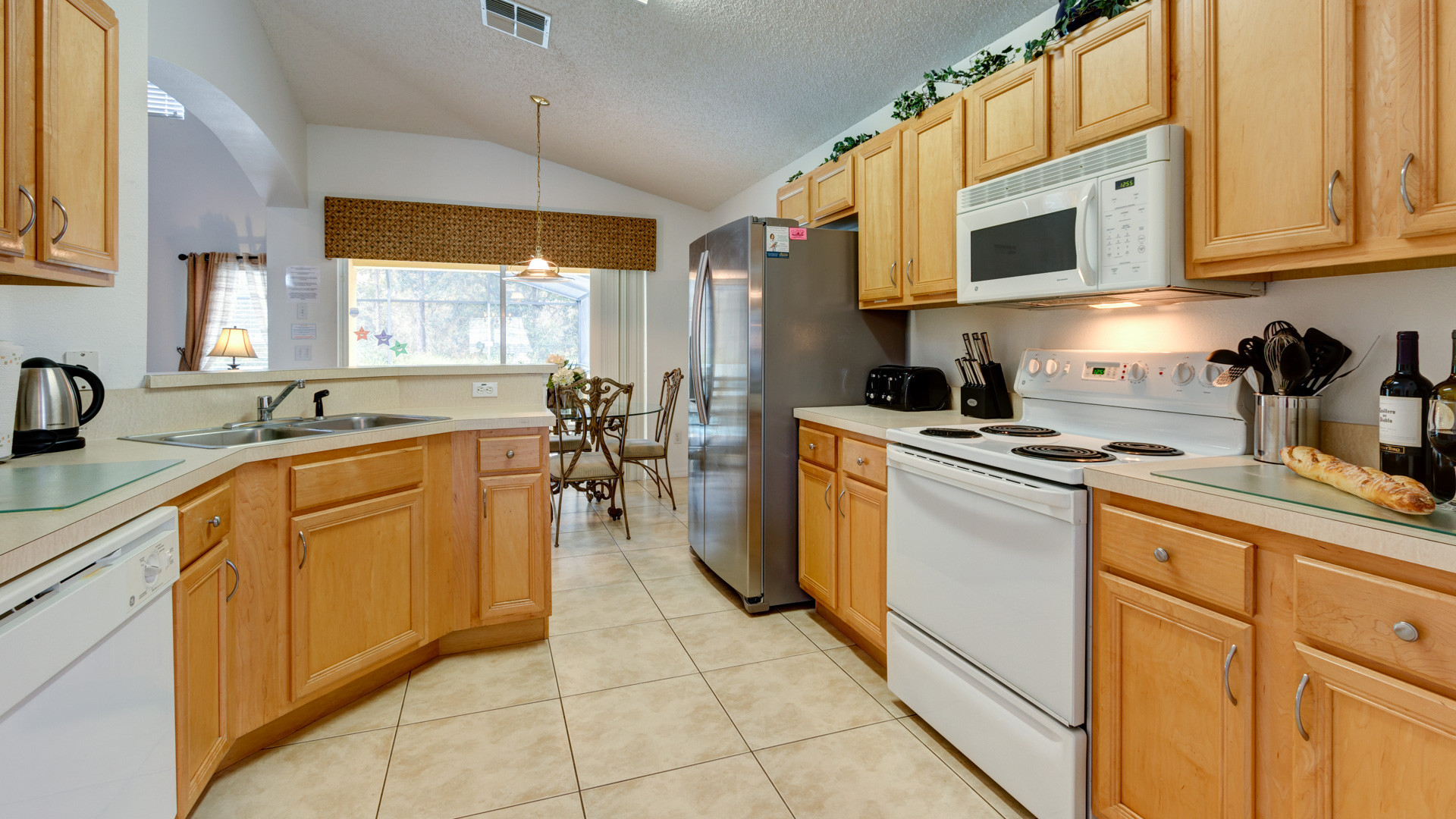 This award winning home has a host of great facilities including air conditioning throughout, WiFi internet, a fully euipped games room and heated pool and spa. It has the added benefit of not being overlooked from the rear, offering guests privacy that is rare in Florida vacation homes. There are two master suites in the villa, one on the ground floor and one on the upper level. There is a further double room and a twin room on the first floor that share a family bathroom, and a shower room on the ground floor. The modern kitchen is fitted with all appliances including a dishwaher, washer and tumble dryer. There is plenty of space to relax in front of the TV with numerous cable channels' or read a book in the quiet sitting area.