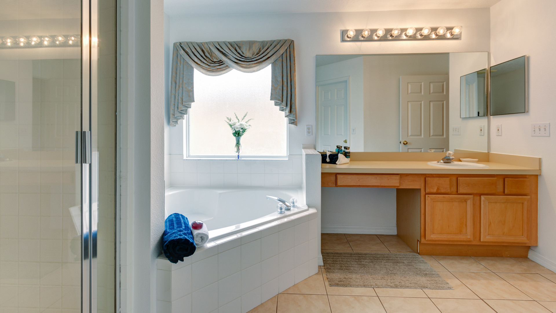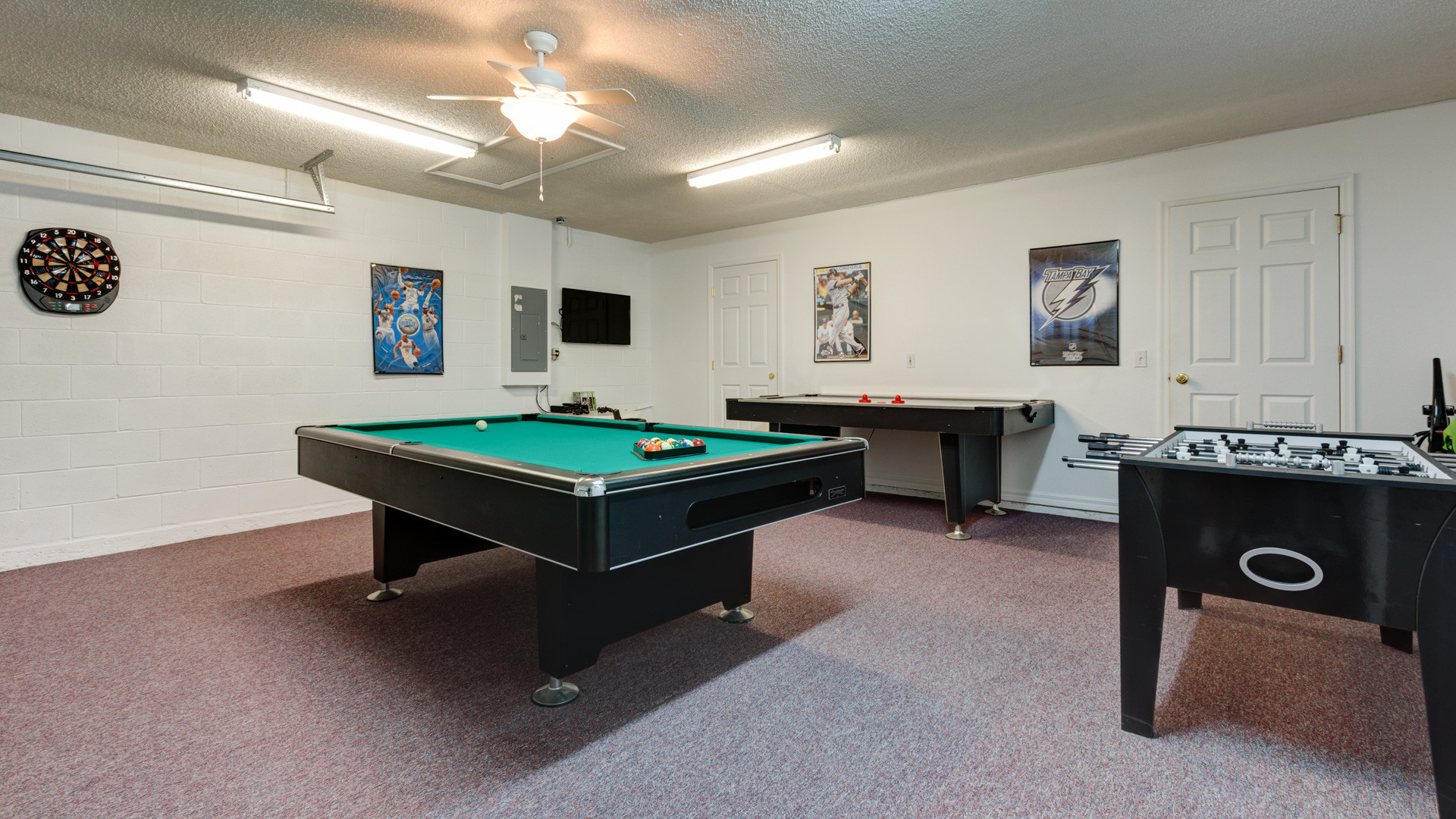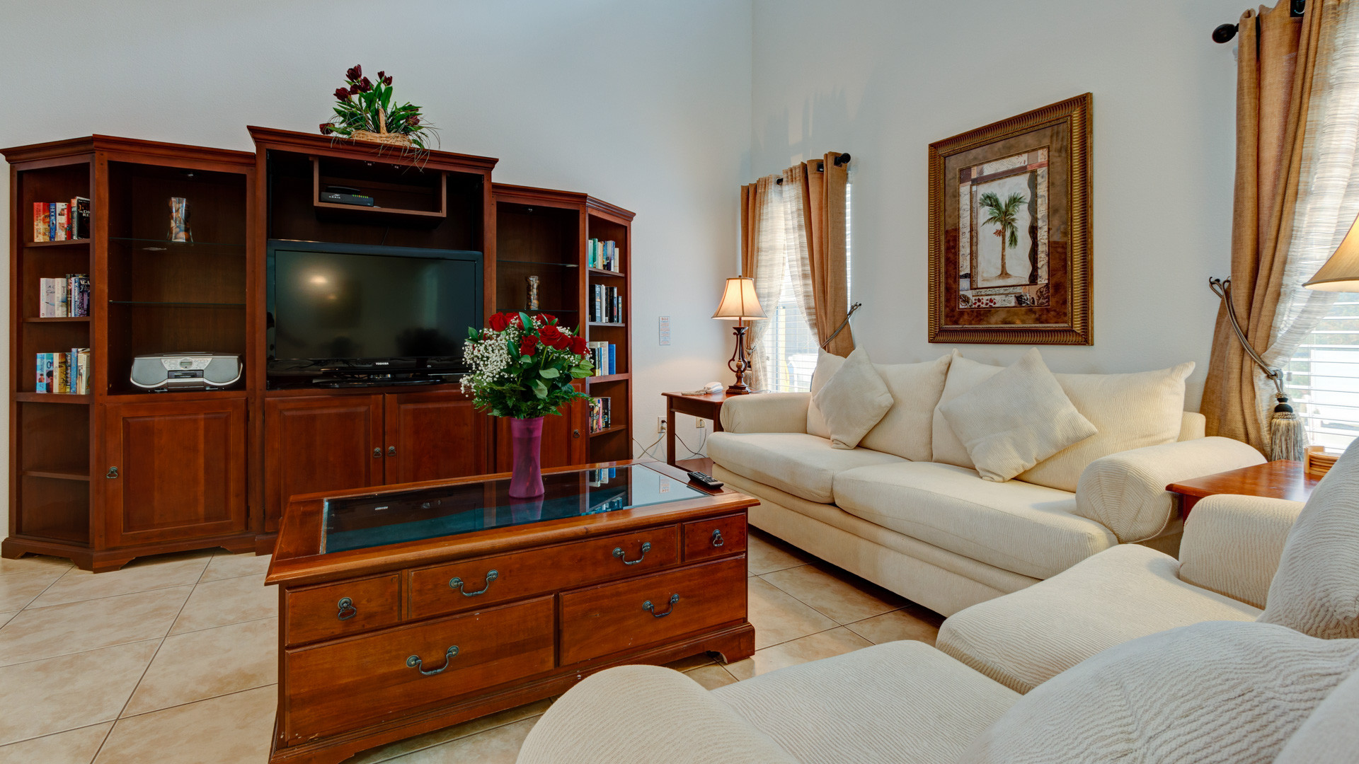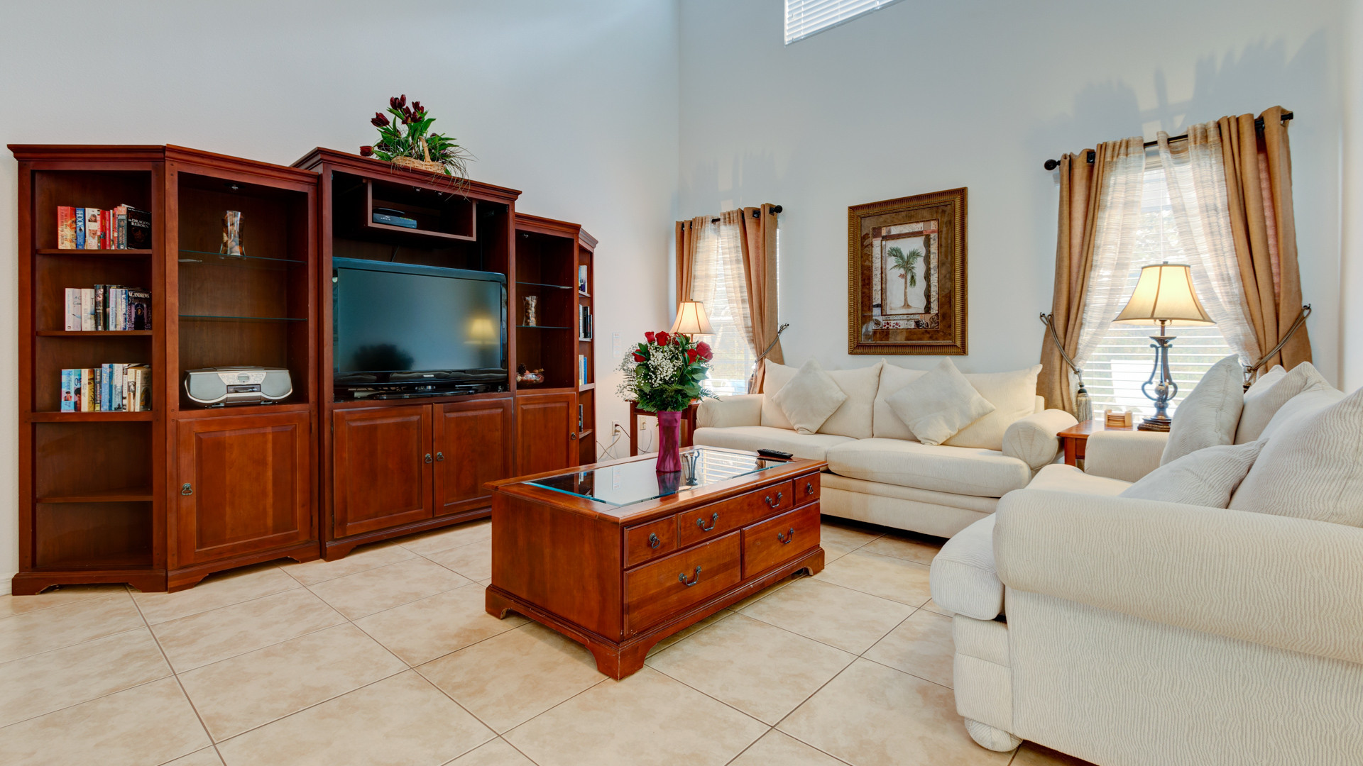 This award winning home has a host of great facilities including air conditioning throughout, WiFi internet, a fully euipped games room and heated pool and spa. It has the added benefit of not being overlooked from the rear, offering guests privacy that is rare in Florida vacation homes. There are two master suites in the villa, one on the ground floor and one on the upper level. There is a further double room and a twin room on the first floor that share a family bathroom, and a shower room on the ground floor. The modern kitchen is fitted with all appliances including a dishwaher, washer and tumble dryer. There is plenty of space to relax in front of the TV with numerous cable channels' or read a book in the quiet sitting area.
