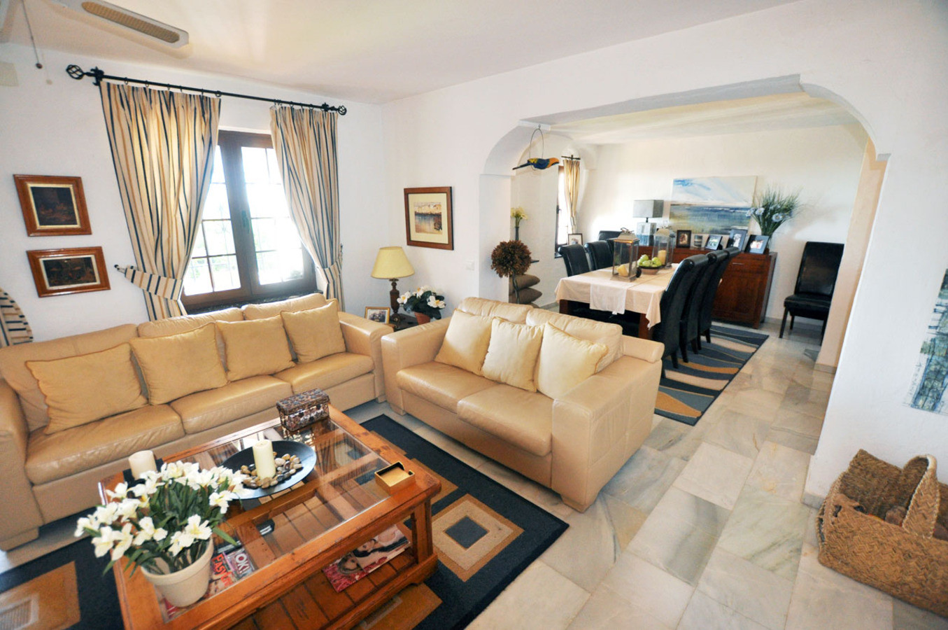 The villa is well located on the picturesque 'Mijas la Nueva' urbanisation which has 2 communal pools and tennis courts that can be used free of charge. There are 2 local bars serving food within a few minutes walk and the traditional Andalusian village of Mijas is just 15 minutes' walk away with its abundance of shops, cafes and restaurants. Lively Fuengirola with its golden sandy beaches is a 15 minute drive from the villa.