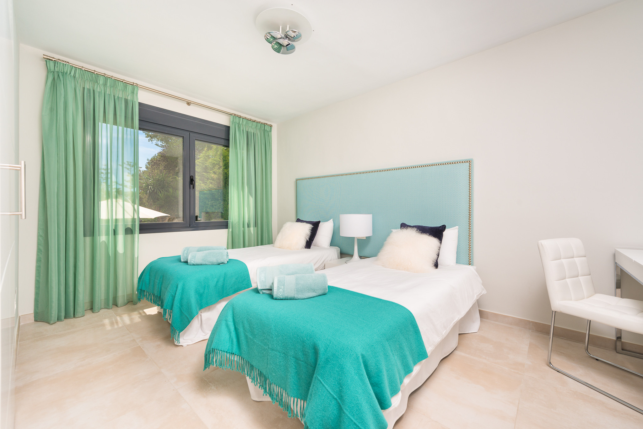 Bedroom 5 has a single bed, with an extra single bed if required, wardrobe and a 32 inch TV. Bedroom 6 is a twin bedded room with wardrobes. All rooms have air conditioning, electric shutters and modern down lighting. There is also a Sonos music system throughout the property.