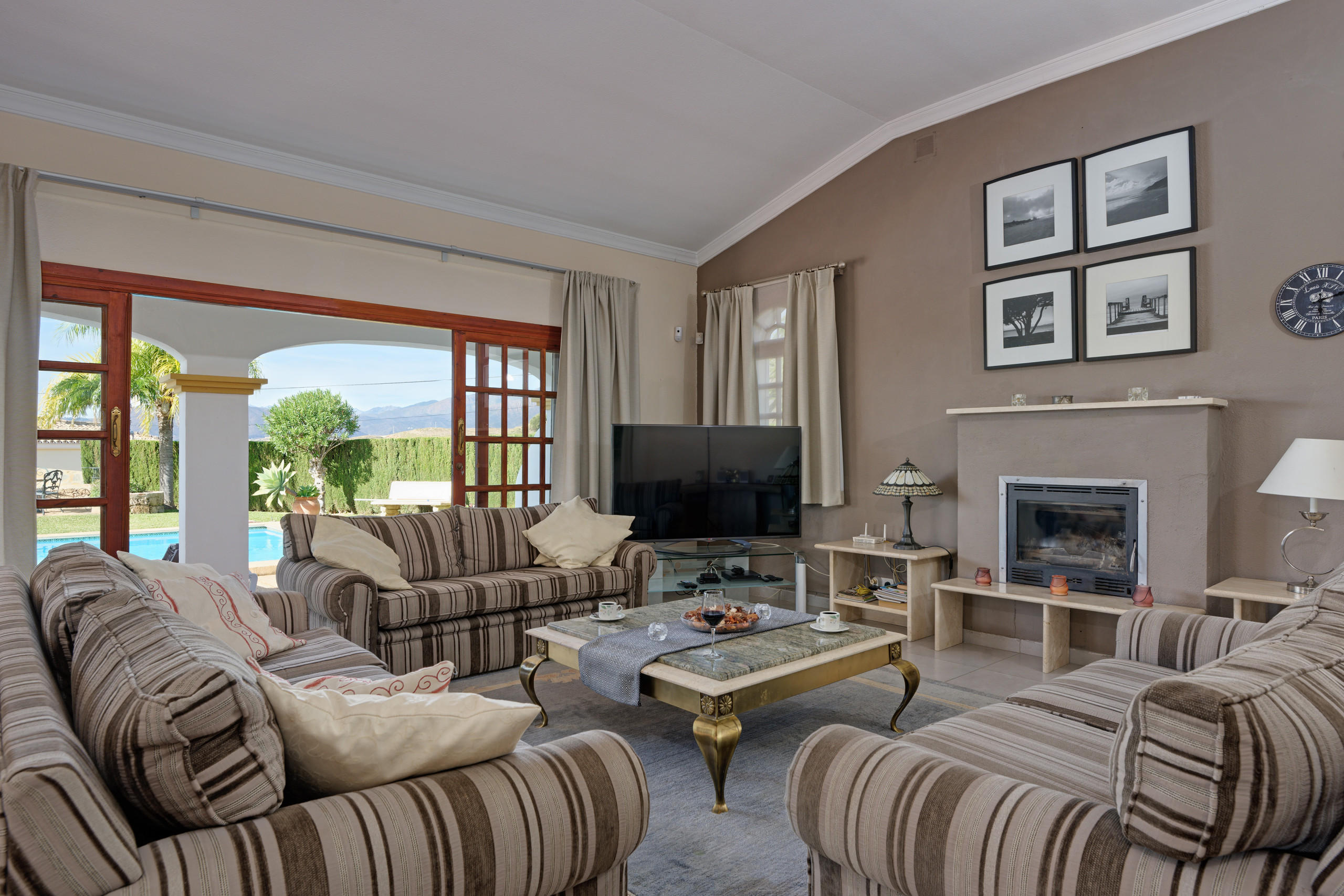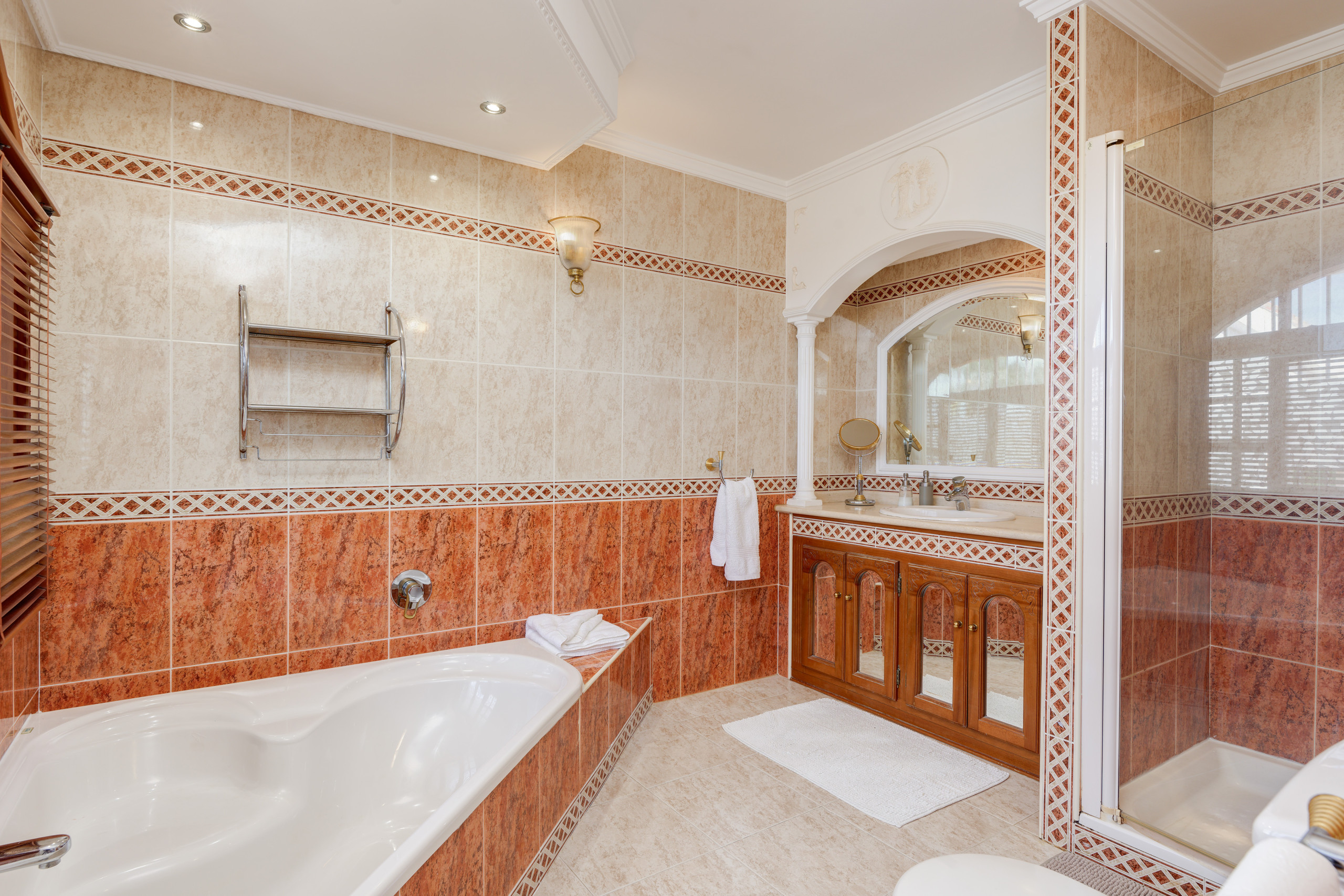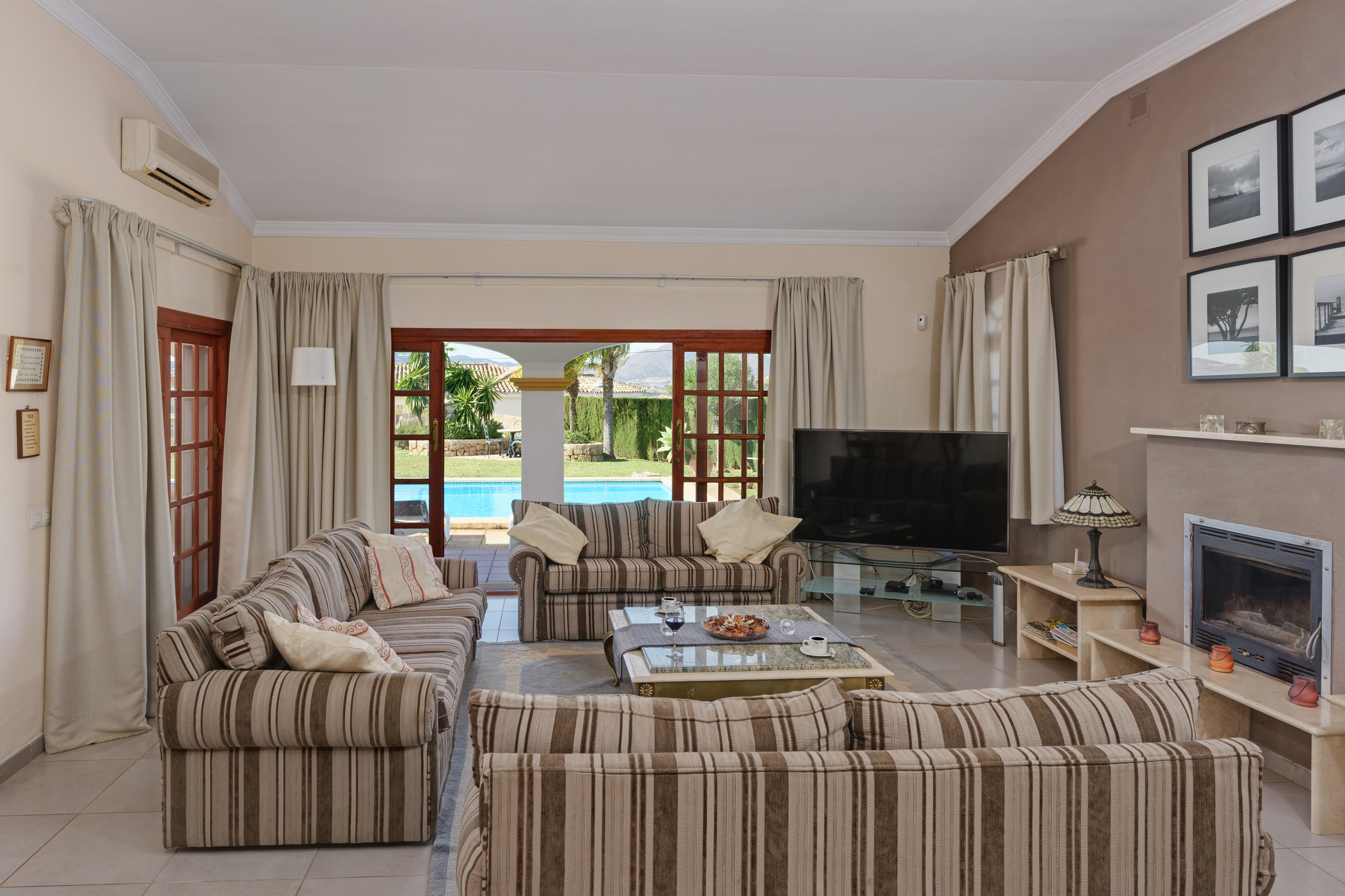 There are two large open plan living rooms with French doors that lead out onto the spacious terrace- and pool-aerea, There is a fully equipped kitchen, a separate dining room and terraces with several sitting groups. This is a perfect villa for families and family-groups who like to spend time splashing in the pool, relaxe on the terrace or simply staying out in wonderful surroundings.