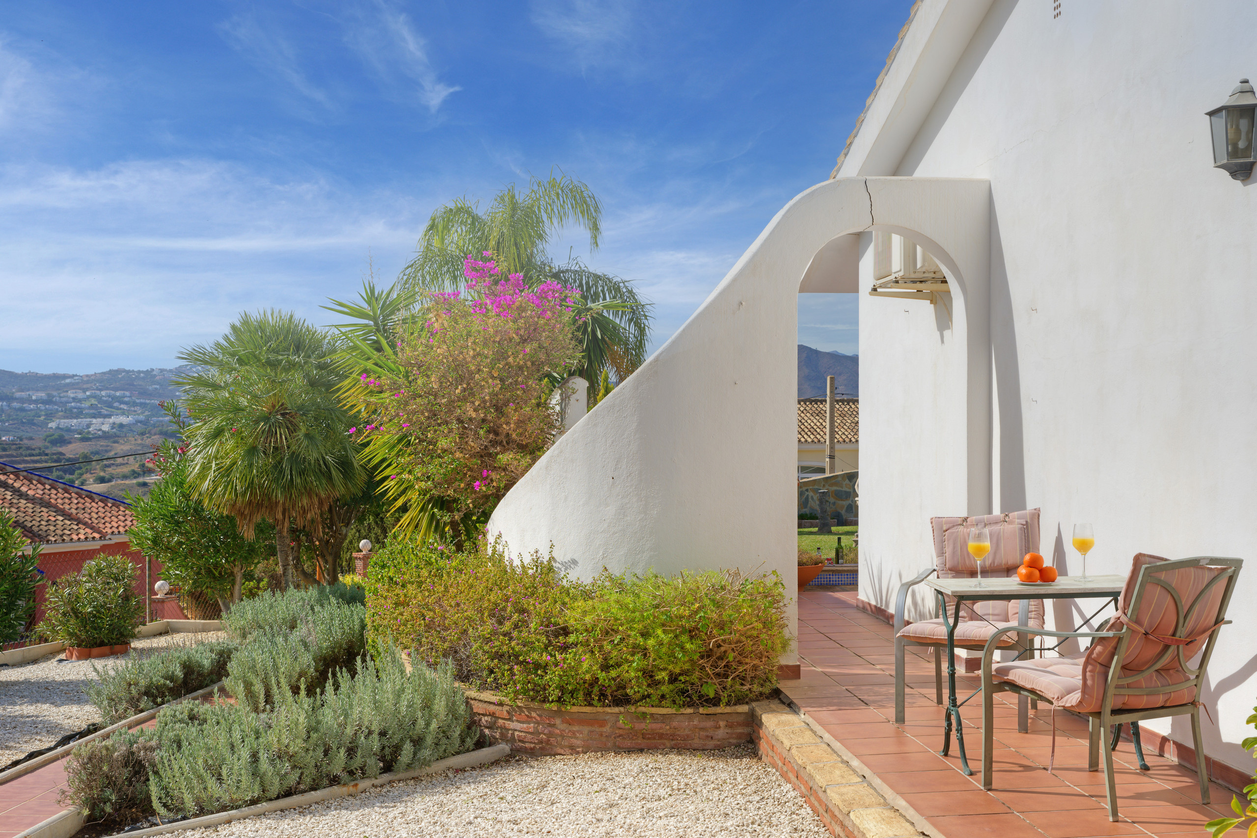 Set in a large plot, this location is truly special with a grand view of the Mediterranian Sea. Sheltered surroundings and a lush garden overlooking Fuengirola, the see and the Mijas mountains (with excellent hiking opportunities).