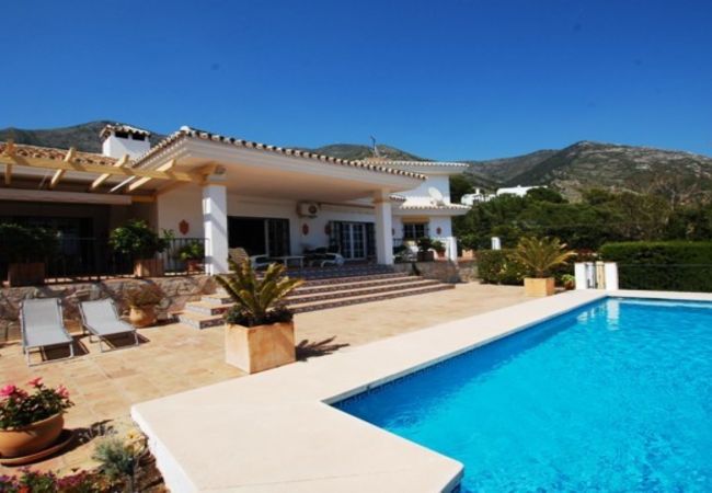 A charming well presented Villa with a total of 3 bedrooms and bathrooms, large open plan living rooms and terraces, lots of outdoor space, fantastic views and a big private pool - Villa SP403, Valtocado, Mijas (Sleeps 8)