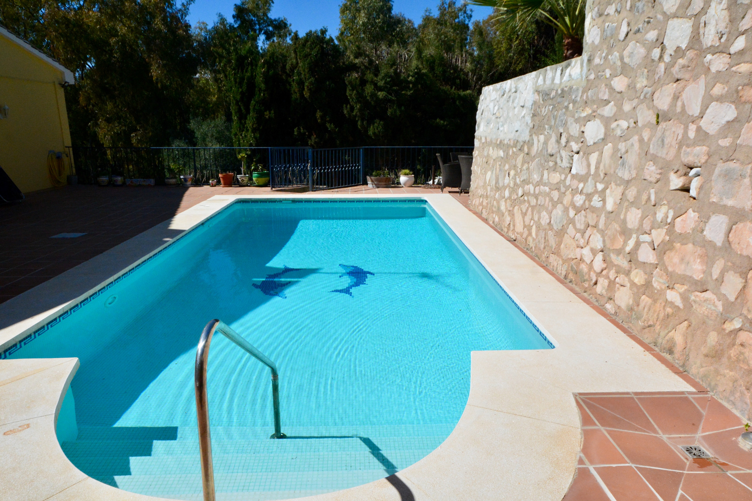 The swimming pool is a great size with easy access into the shallow end via Roman steps. A heated pool is available if ordered.